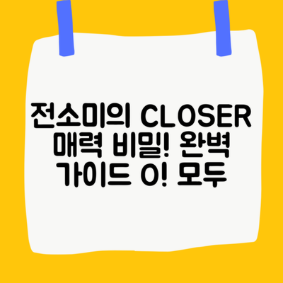 이처럼 CLOSER는 전소미의 음악적 성숙도와 매력을 한층 더 부각시켜주는 곡입니다. 이번 활동을 통해 그녀의 팬들과의 소통이 더욱 깊어질 것으로 기대됩니다.