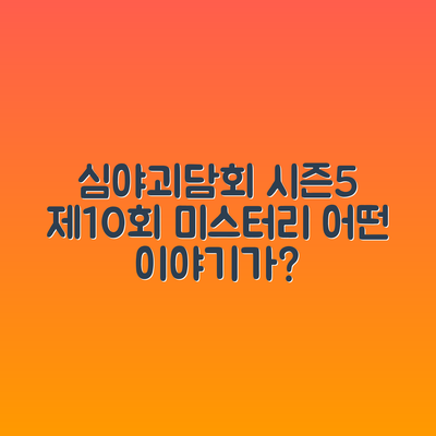 각 이야기들은 실제 경험담을 바탕으로 한 심리적 공포를 중심으로 구성되어 있어 시청자들에게 깊은 인상을 남길 것입니다. 심야괴담회 시즌5 10회는 단순한 웃음을 넘어 진정한 공포를 경험할 수 있는 귀중한 시간이 될 것입니다.